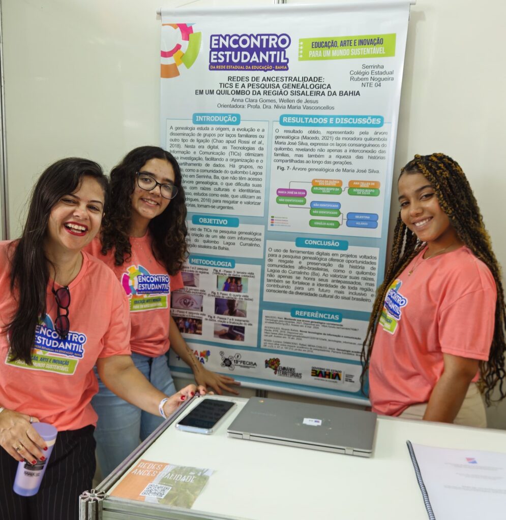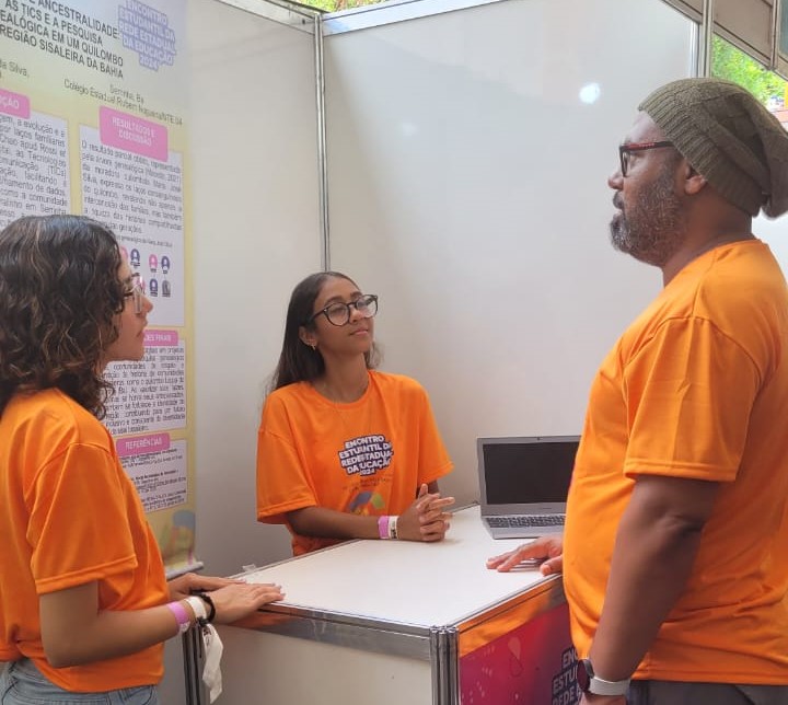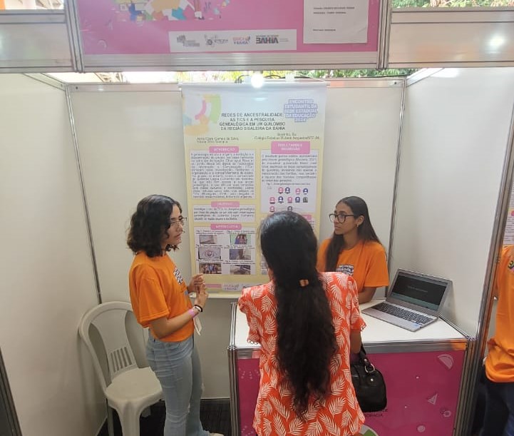 O nosso projeto foi convidado para participar da mesa dialógica A demarcação dos saberes ancestrais na iniciação científica: experiência da rede de ensino do estado da Bahia, e a aluna Anna Clara Gomes da Silva Oliveira foi para representar a equipe.